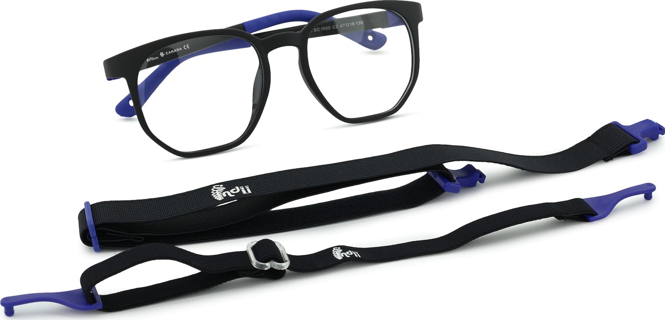 Indii Kids IN-modellen har to justerbare tekstilremme, som hjælper med at eliminere risikoen for at miste brillerne og sikrer en bedre fastgørelse på hovedet under forskellige børneaktiviteter.